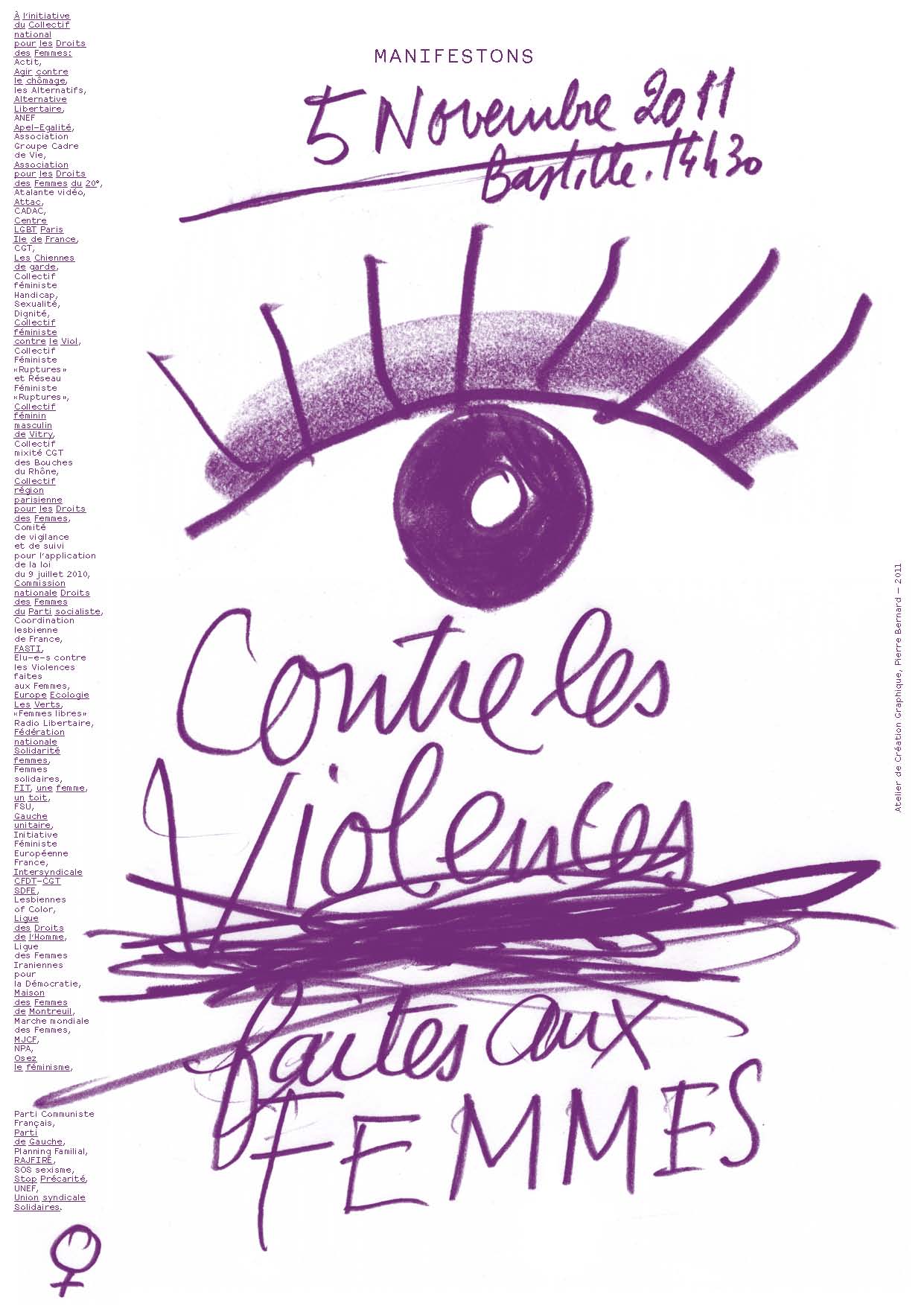 Signataires : Collectif national pour les Droits des Femmes, Actit, Agir contre le chômage, les Alternatifs, Alternative Libertaire, ANEF, Apel-Egalité, Association Groupe Cadre de Vie, Association pour les Droits des Femmes du 20è, Atalante vidéo, Attac, CADAC, , Centre LGBT Paris Ile de France, CGT, Les Chiennes de garde, Collectif féministe Handicap, Sexualité, Dignité, Collectif féministe contre le Viol, Collectif Féministe « Ruptures » et Réseau Féministe « Ruptures », Collectif féminin masculin de Vitry, Collectif mixité CGT des Bouches du Rhône, Collectif région parisienne pour les Droits des Femmes, Comité de vigilance et de suivi pour l’application de la loi du 9 juillet 2010, Commission nationale Droits des Femmes du Parti socialiste, Coordination lesbienne de France, DECIL : Démocratie et Citoyenneté Locale (Mantes la Jolie), FASTI, Elu-e-s contre les Violences faites aux Femmes, Europe Ecologie Les Verts, « Femmes libres » Radio Libertaire, Fédération nationale Solidarité femmes, Femmes solidaires, FIT, une femme, un toit, FSU, Garçes (groupe d’action et de réflexion contre l’environnement sexiste, Sciences po Paris), Gauche unitaire, Initiative Féministe Européenne France, Intersyndicale CFDT-CGT SDFE, Lesbiennes of Color, Ligue des droits de l’Homme, Ligue des Femmes Iraniennes pour la Démocratie, Maison des Femmes de Montreuil, Marche mondiale des Femmes, MJCF, Mouvement Jeunes Femmes, NPA, Osez le féminisme, Paroles de femmes, Parti Communiste Français, Parti de Gauche, Planning Familial, RAJFIRE, SOS sexisme, Stop Précarité, UNEF, Union syndicale Solidaires.
