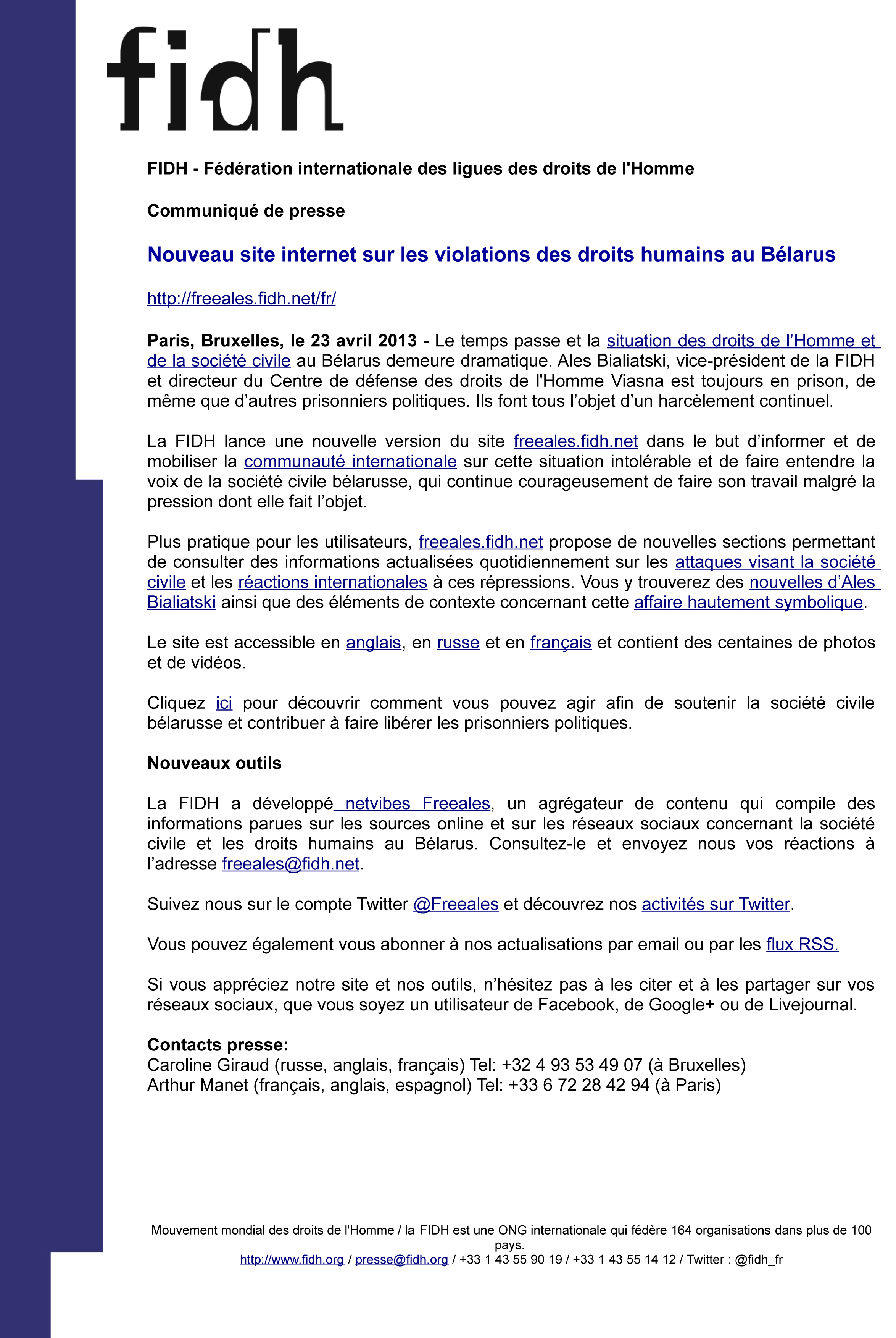 Ales Bialiatski, vice-président de la FIDH, est emprisonné depuis près deux ans. En dépit de la situation difficile qui règne dans le pays, nous restons mobilisés pour obtenir sa libération et pour soutenir ses collègues qui continuent de se battre pour la liberté et la dignité dans leur pays.