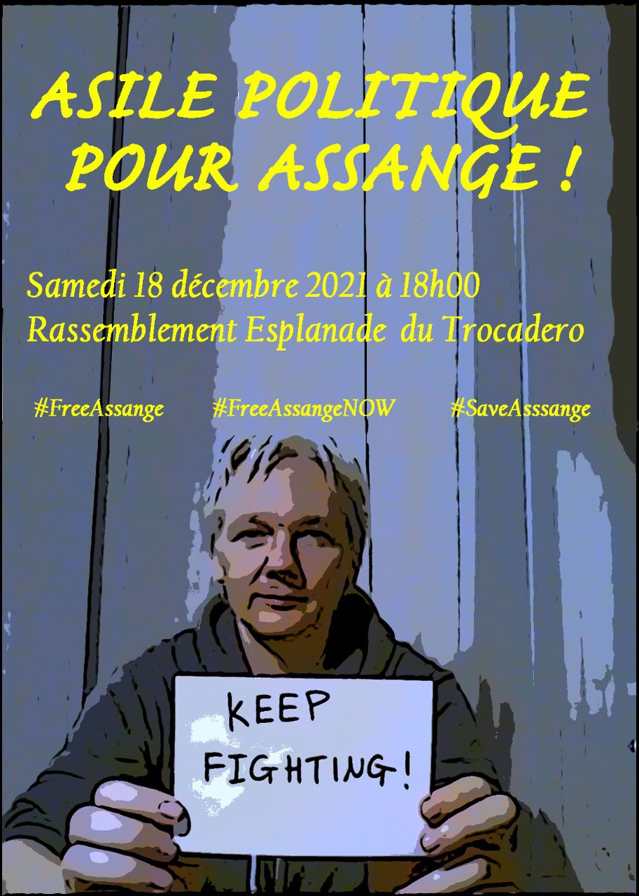 À l’appel de citoyennes et citoyens, un rassemblement est organisé ce samedi 18 décembre à 18h00, parvis des Droits de l’Homme, place du Trocadéro, pour appeler l’Etat français à accorder d’urgence l’asile politique à Julian Assange.