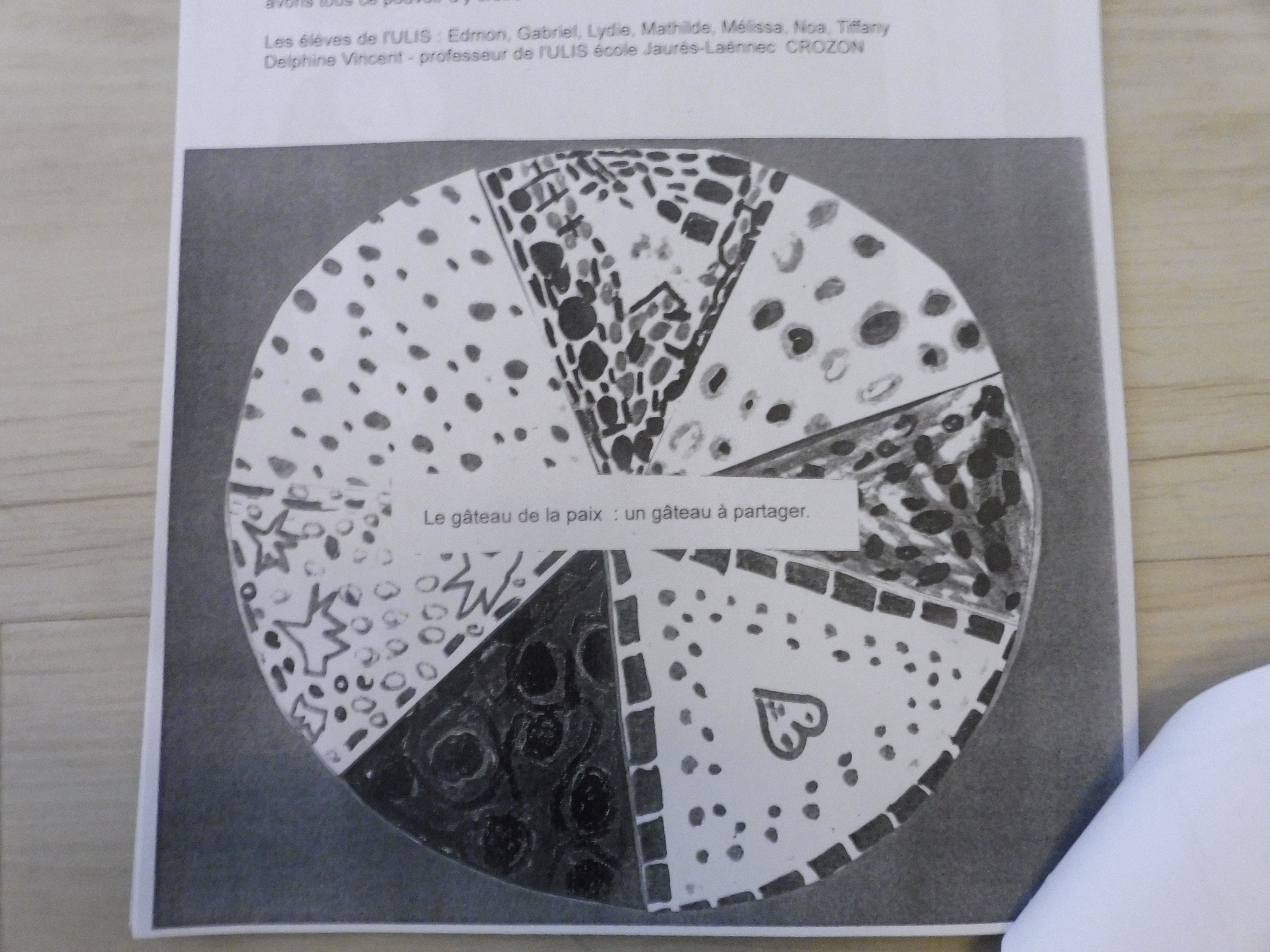 Lydie Le Quément, Noa Bougon, Gabriel Salmon, Mélissa Laidoune, Tiffany Bernard, Mathilde Couic, Edmon Lastennet, classe ULIS, école Jaurès-Laënnec, Crozon – LDH Presqu’île de Crozon