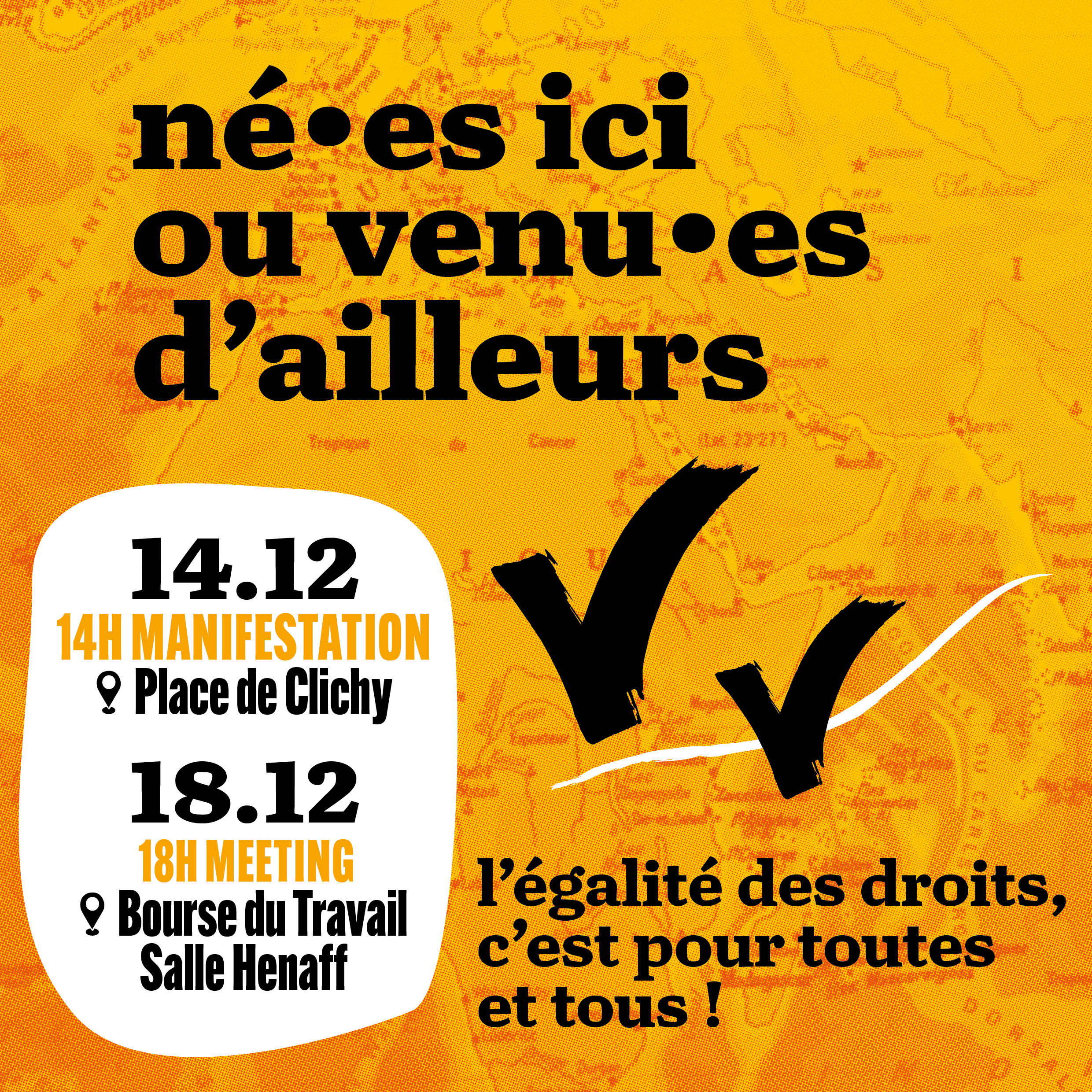 Le 14 décembre, manifestons partout en France, et à Paris, place Clichy à 14h, pour défendre le respect de la protection et des droits des travailleuses et travailleurs migrants, de leurs familles et de toutes les personnes exilées !