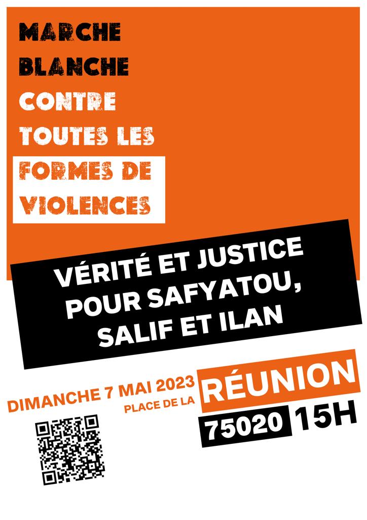 Le dimanche 7 mai à 15h, place de la Réunion à Paris. Marche de soutien aux victimes et à leurs familles. Dans la nuit du 13 avril, trois mineurs de 13, 14 et 17 ans qui circulaient sur un scooter ont été poursuivis par la police. Selon plusieurs témoignages : « un véhicule de police les a percutés volontairement, les faisant ainsi chuter », la conductrice, une jeune fille de 17 ans, a été hospitalisée avec pronostic vital engagé pendant plusieurs jours. Lire la suite