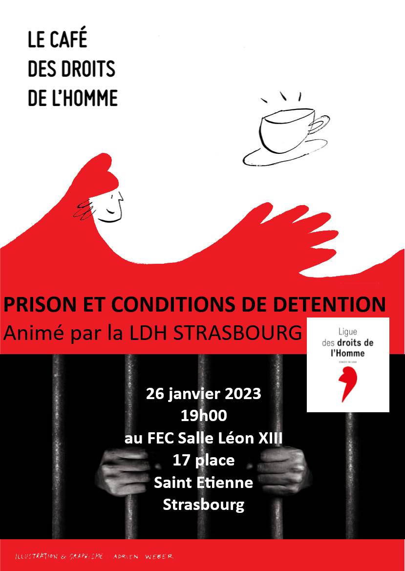 Ce débat sera modéré par la LDH Strasbourg. Il prendra la forme d’échanges entre différents acteurs qui interviennent en prison (professionnels et associations) que nous avons le privilège d’accueillir, puis d’échanges / questions avec vous.
