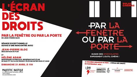 La Fédération de Paris de la Ligue des droits de l’Homme et Autour du 1er mai vous proposent de découvrir le film Par la fenêtre ou par la porte : l’affaire France Telecom – Orange, racontée pour la première fois par celles et ceux qui ont mené le combat.