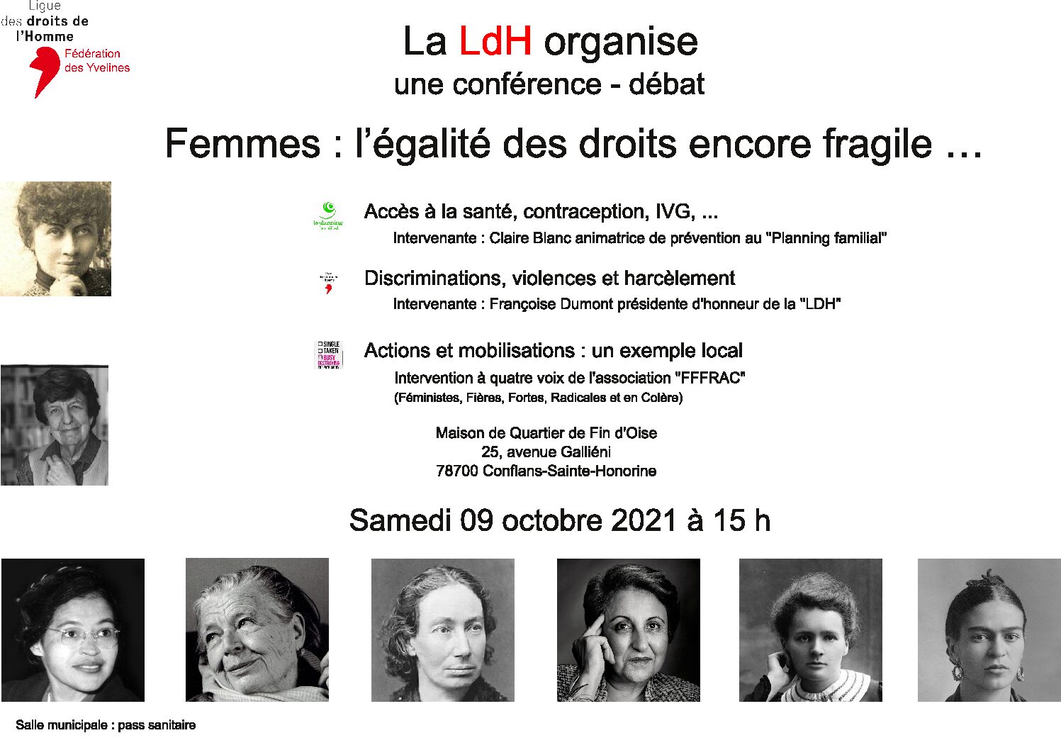 YVELINES – LDH Yvelines organise une conférence-débat qui a pour thème : « Femmes : l’égalité des droits encore fragile… »