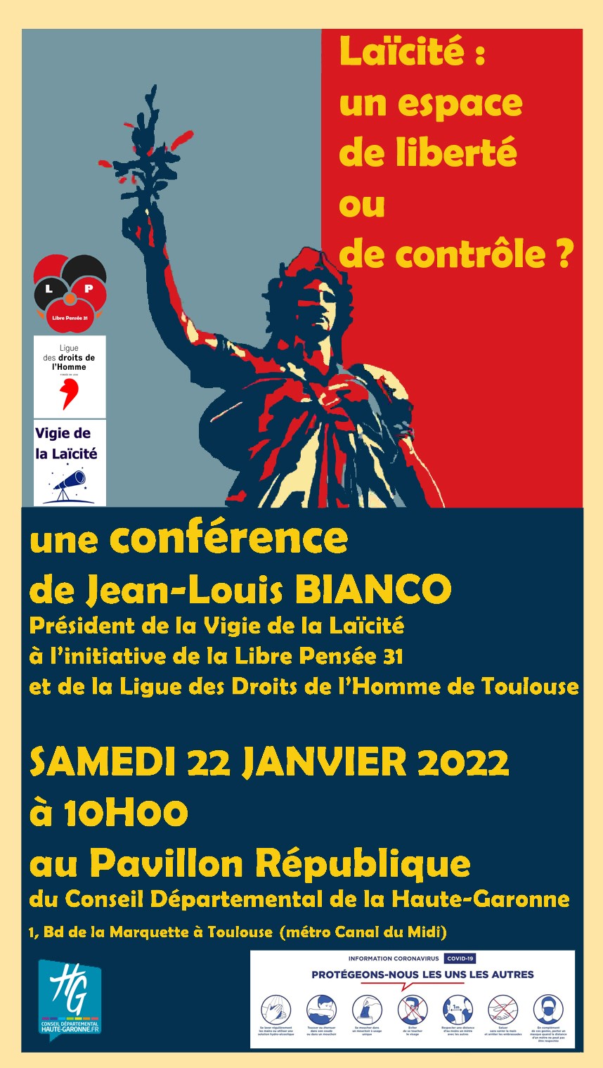 La Libre Pensée 31 et la LDH de Toulouse organisent une conférence publique avec Jean-Louis Bianco sur le thème « La laïcité : un espace de liberté ou de contrôle ? ».