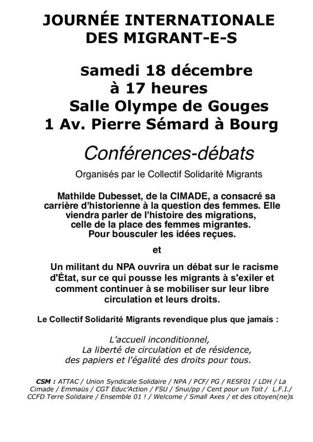 Le 18 décembre à 17h à la salle Olympe de Gouge, conférence suivie d’un débat.