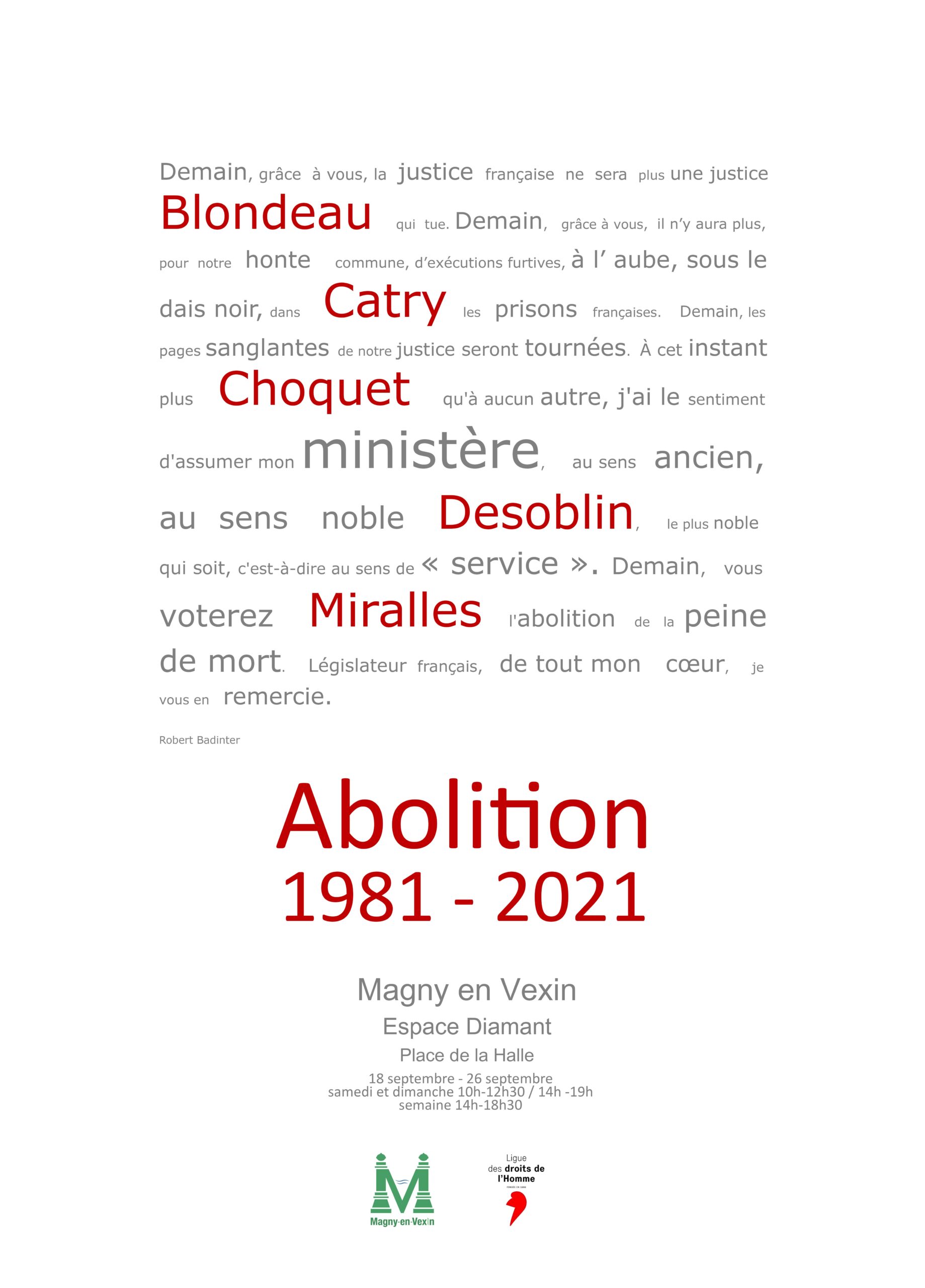 Vernissage le samedi 18 septembre de 18h à 20h. Avec les oeuvres de Xavier Blondeau, photographe, Pascal Catry, plasticien, Jean-loup Choquet, plasticien, Anne-sophie Desoblin, peintre, Jean-Michel Miralles, peintre. Chaque artiste propose 1 œuvre minimum sur la peine de mort, le reste de l’exposition est consacré à la défense de nos droits fondamentaux.