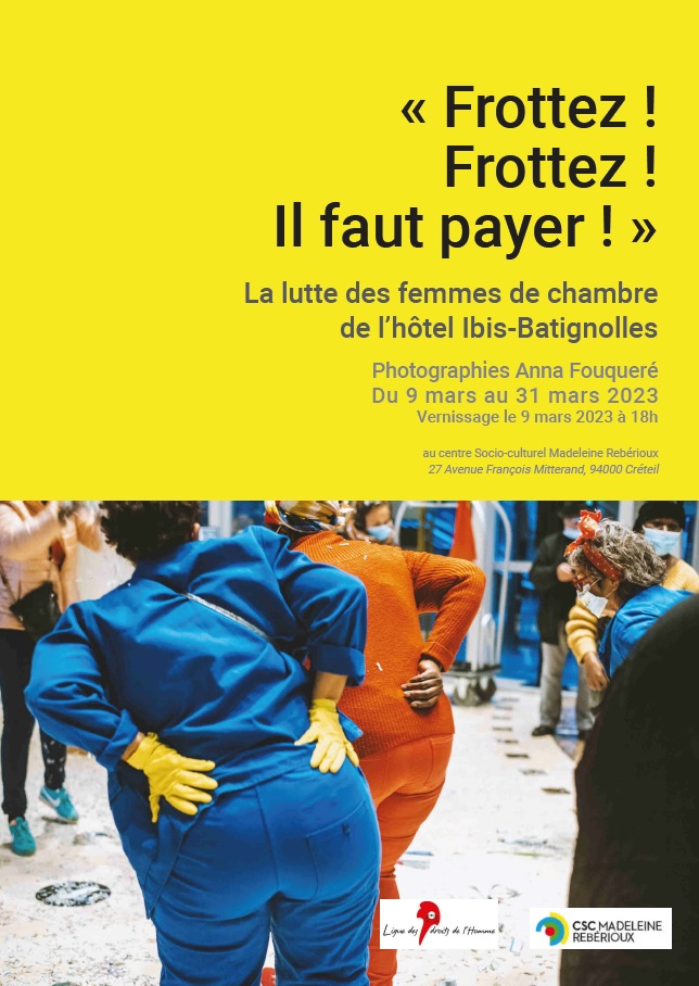 Du 9 au 31 mars, exposition photos « La Lutte des femmes de chambre de l’hôtel Ibis-Batignoles » d’Anna Fouqueré. Vernissage le 9 mars à 18h.
