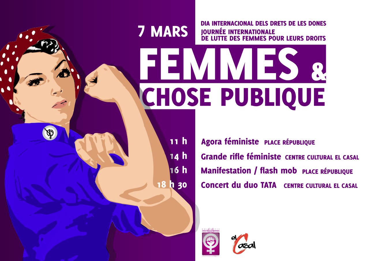 11h : Agora féministe, place de la République de Perpignan sur le thème “Les femmes et la chose publique”. Débat sur la politique et les problématiques de la ville… d’un point de vue féministe ! Les quatre femmes têtes de liste sont invitées, ainsi que des spécialistes sur quatre thèmes: femme et lesbienne, double discrimination ; santé ; précarité féminine ; femme SDF en danger permanent, la place des femmes dans le mouvement des gilets jaunes, urbanisme féministe.