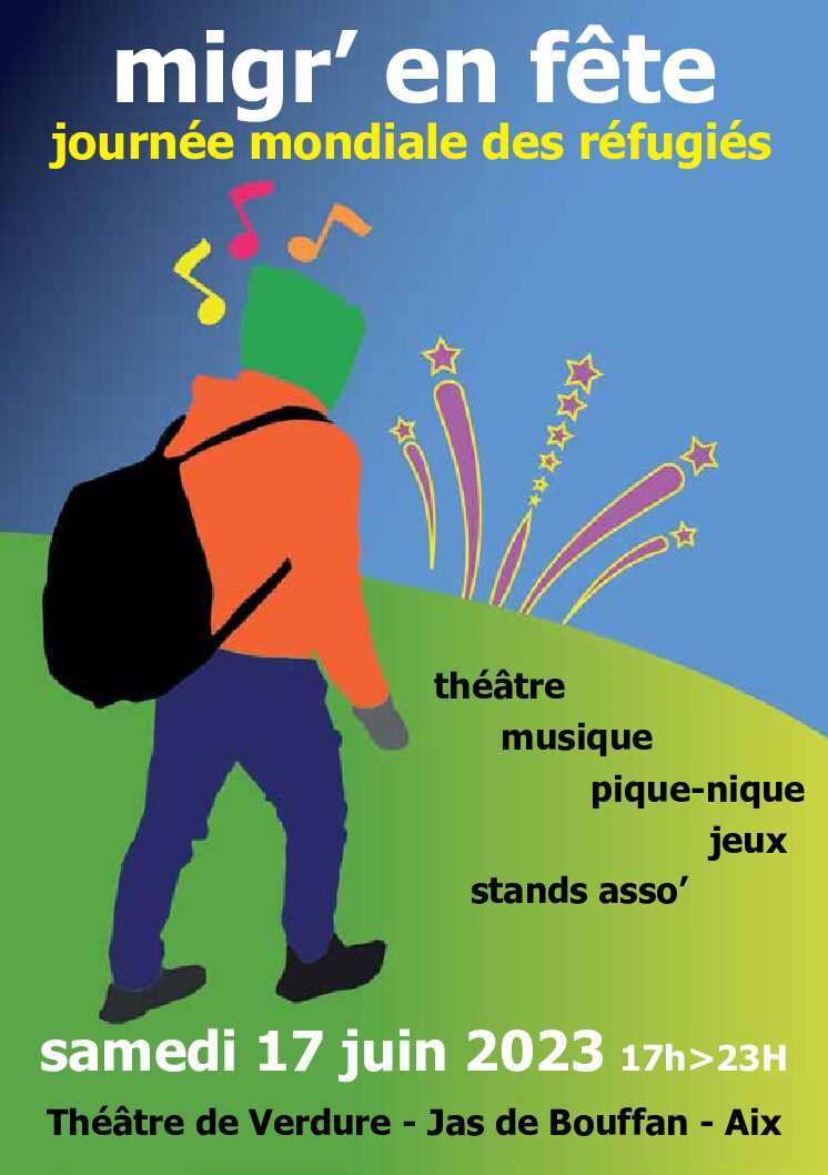 A l’occasion de la Journée mondiale des réfugiés, un ensemble d’associations du pays d’Aix-en-Provence organise la « Migr’en fête ». Au programme de cette soirée : du théâtre, de la musique, un pique-nique, des jeux,…
