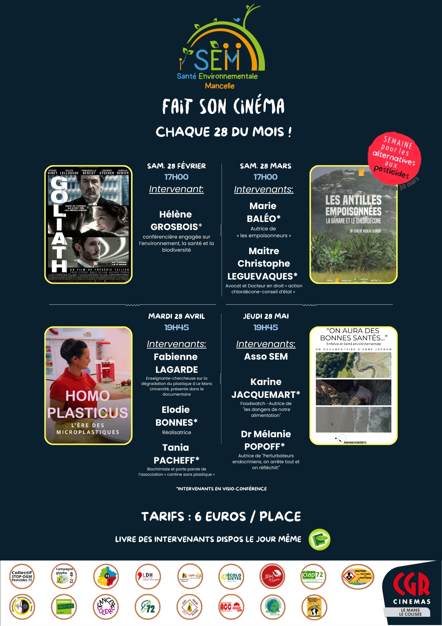 Organisation d’une projection-débat le samedi 28 février à 17h au cinéma CGR Le Colisée au Mans, du film Goliath en présence d’Hélène Grosbois, écologiste.