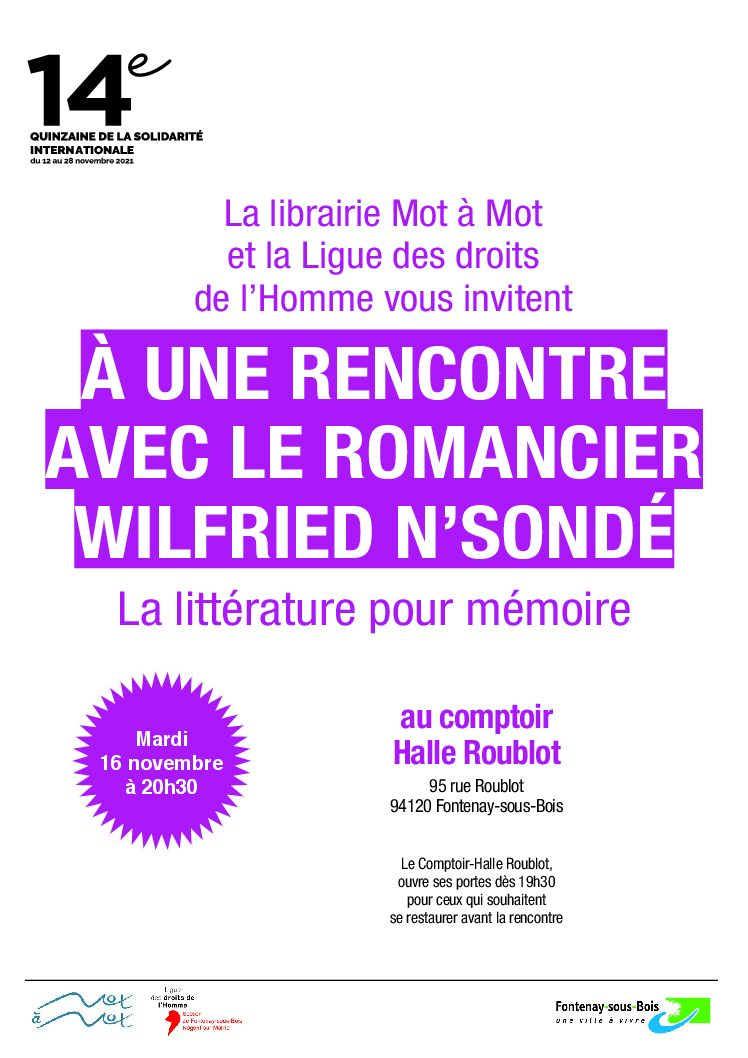 Le mardi 16 novembre à 20h30, à le comptoir – Halle Roublot, à Fontenay-sous-Bois. En présence de Wilfried N’Sondé, romancier.