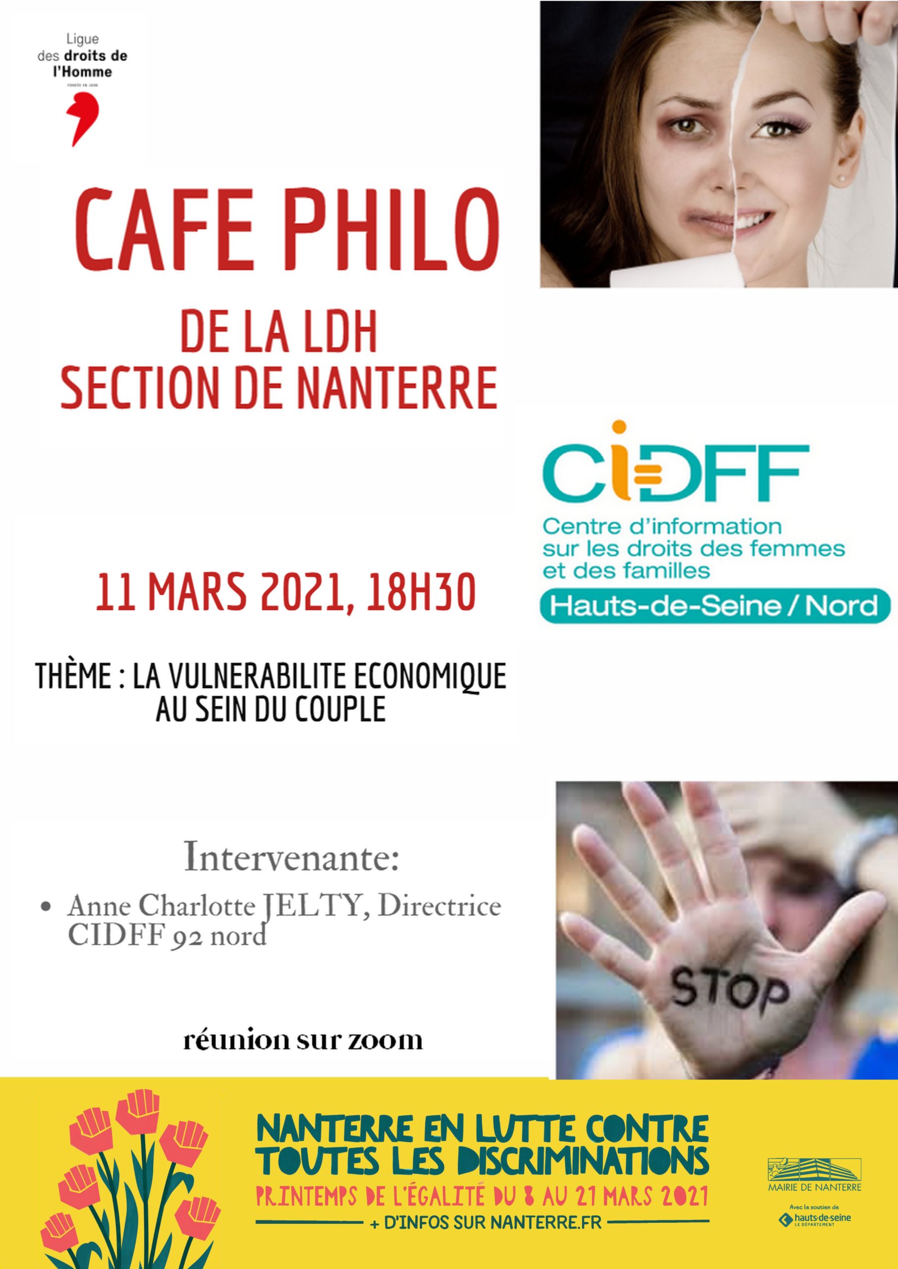 La section organise un café philo le 11 mars 2021 à 18h30, dans le cadre du printemps de l’égalité, via Zoom.