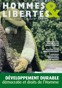 Le numéro 170 de la revue Hommes & Libertés, trimestriel de la Ligue des droits de l’Homme, est paru ! Avec un dossier « Développement durable, démocratie et droits de l’Homme » et d’autres articles sur la panthéonisation de Germaine Tillion, le racisme, les lanceurs d’alerte, la corruption et l’impunité au Mexique, l’homosexualité en Afrique, une rencontre avec François Dubet sur le vivre ensemble…