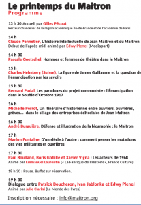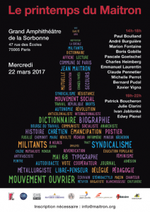 A l’occasion de l’aboutissement du Maitron 1789-1968 (56 volumes plus les volumes thématiques et internationaux) où figurent de nombreuses biographies de membres de la LDH, inscrivez-vous à la journée « Le Printemps du Maitron », qui aura lieu le 22 mars 2017 dans le Grand amphi de la Sorbonne.