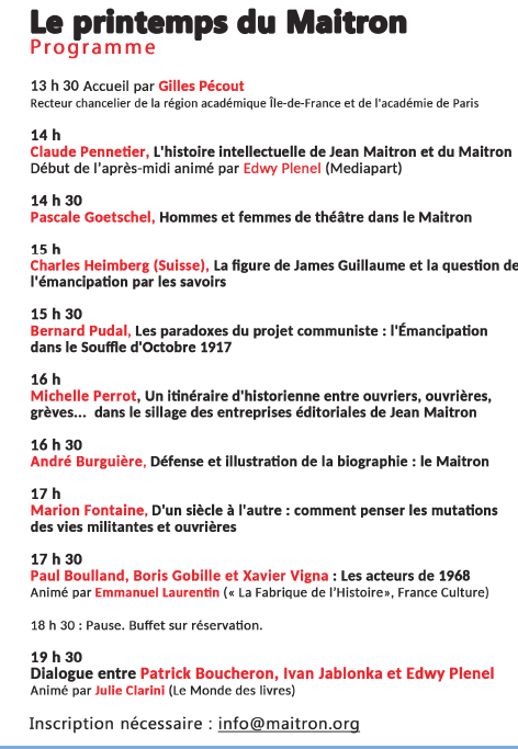 Pour vous inscrire, envoyez un mail avec vos coordonnées à :  info@maitron.org