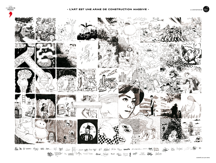 * Liste complète des dessinateurs ayant participé au projet : Lewis Trondheim, Edika, Florence Cestac, Etienne Davodeau, Zep, Coco, Boulet, Marion Montaigne, Kim Jung Gi, Bastien Vivès, Aurélie Neyret, Pascal Rabaté, Cyril Pedrosa, Marc Antoine Mathieu, Julie Maroh, Mathieu Sapin, Nathalie Ferlut, Balak, Mezzo, Frédéric Bézian, Frederik Peeters, Peggy Adam, Manuele Fior, Pozla, Benjamin Renner, Aurel, David Prudhomme, Grégory Panaccione, Fanny Michaëlis, Joseph Falzon, Romain Renard, Jérémie Moreau, Wandrille, Alexandre Clérisse, Benjamin Flao, Eric Fleury, Natacha Sicaud, Kyung Eun Park, Hamid Suleiman, Gael Remise & Fabien Tillon, 20Clefs, Damantier, Eric Liberge, Julie Gore, Edouard Cour