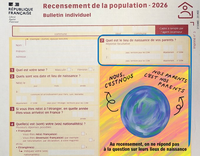 Parce que la question facultative sur le pays ou le département de naissance de nos parents, introduite en 2025 dans le recensement, est dangereuse et inutile, il ne faut pas y répondre.